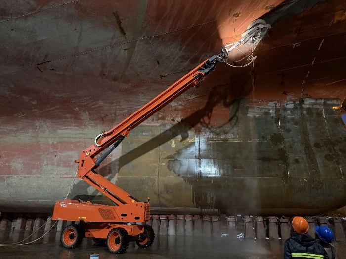近期,以模塊化臂式平臺為基礎(chǔ),鼎力船舶除銹噴涂機(jī)器人系列再添一員,且已正式服役于某船廠。